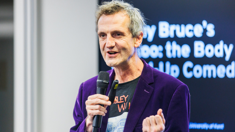 Am 13. November 2025 betrachtete Oliver Double in seiner Keynote den vielfältigen Einsatz des Körpers in der Stand-Up Comedy. Moderiert wurde der Abend von David Roesner. Unter dem Titel „Lenny Bruce’s Tattoo” stellte Double die Annahme, dass Stand-Up eine primär verbale Kunst darstelle, auf den Prüfstand. Seine ebenso umfassende wie amüsante Keynote zeigte stattdessen auf, wie Darsteller*innen den eigenen Körper nutzen, um ihre Bühnenfiguren zu konturieren und Beziehungen zum Publikum aufzubauen. Für Stand-Up als Performancekunst sei die Materialität des Körpers ausschlaggebend: Sie erlaube Komödiant*innen komplexe Sachverhalte wie körperliche Differenz, Disability, Krankheit und Stereotypisierung auch in ihrer gesellschaftspolitischen Brisanz zu adressieren. Eine Aufzeichnung der Keynote kann auf dem Youtube-Kanal des KWI eingesehen werden.
